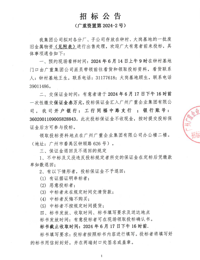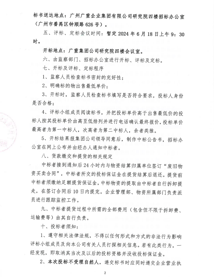 廢舊金屬物資處置(廣重資置2024-2號)